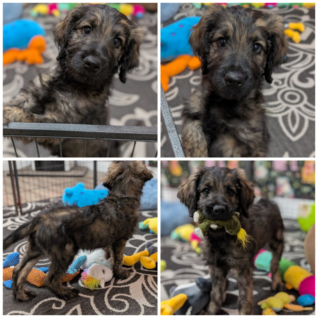 Archie is an F1 Standard English Goldendoodle, his owners sadly had to bring him back after just 1 week at his new home due to them realizing they are no way near ready for the responsibility of a puppy. He’s a happy, healthy puppy, loves to play with toys, enjoys ear rubs and is so much fun. He is looking for a new family to call his own. If you’re interested in learning more please contact us at 810-488-1619 or email us at applecreekdoodles@gmail.com.
