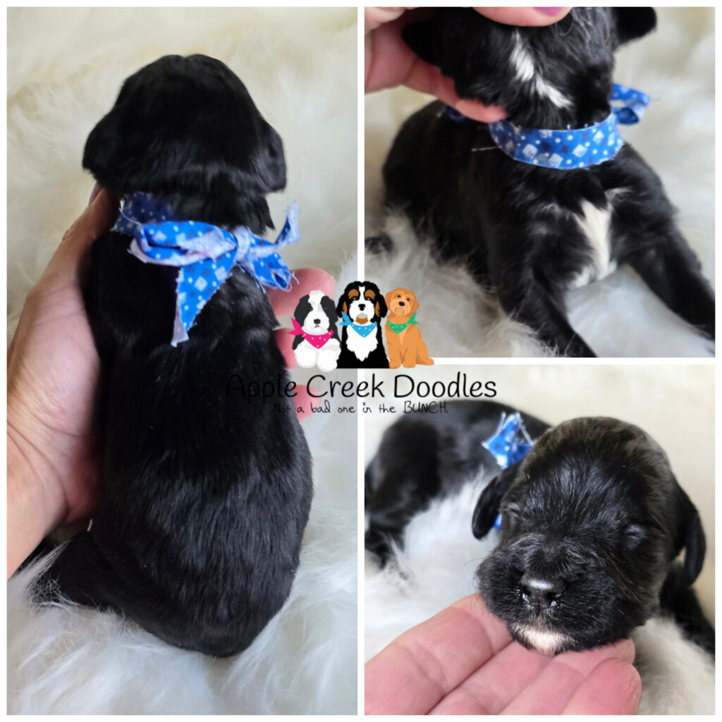 We are now accepting deposits for Kit’s litter of Blue Merle and Black F1 English Goldendoodle Puppies. We have 2 merle spots open, 1 brindle male, 1 black male and 1 black female spot.
