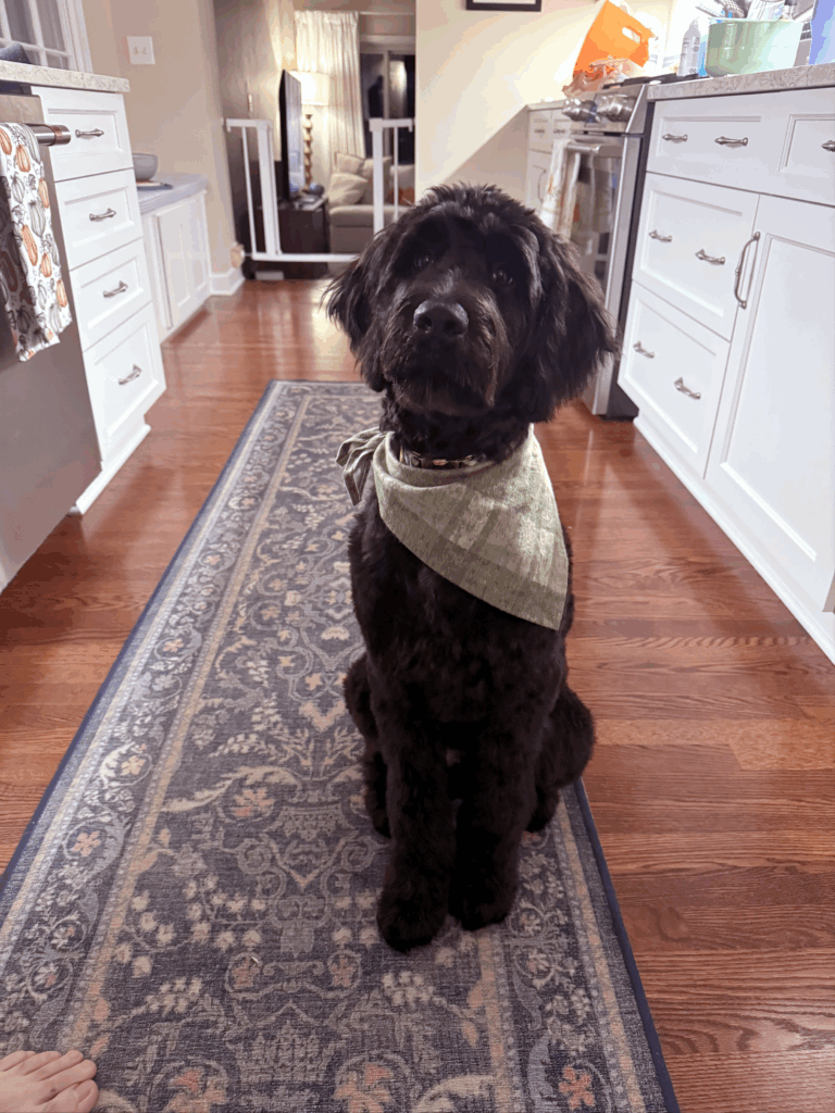 Philo is a handsome black pup, his coat is so plush and soft! He’s doing great and his family loves him.