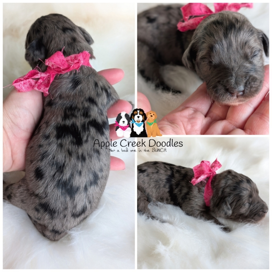 The first 15 pictures are of Kit and Leo’s puppies from their prior litter of F1 English Goldendoodle puppies, the rest are to show the beautiful colors of merle.