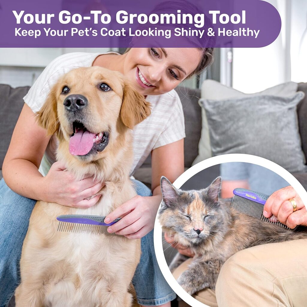 Being a professional groomer for many years, I am very particular about the comb I use and what works best. Some are too short, to thick, or too wide-toothed. I found this set and I love it. Click here to view our Amazon link. Hertzko Comb Set.