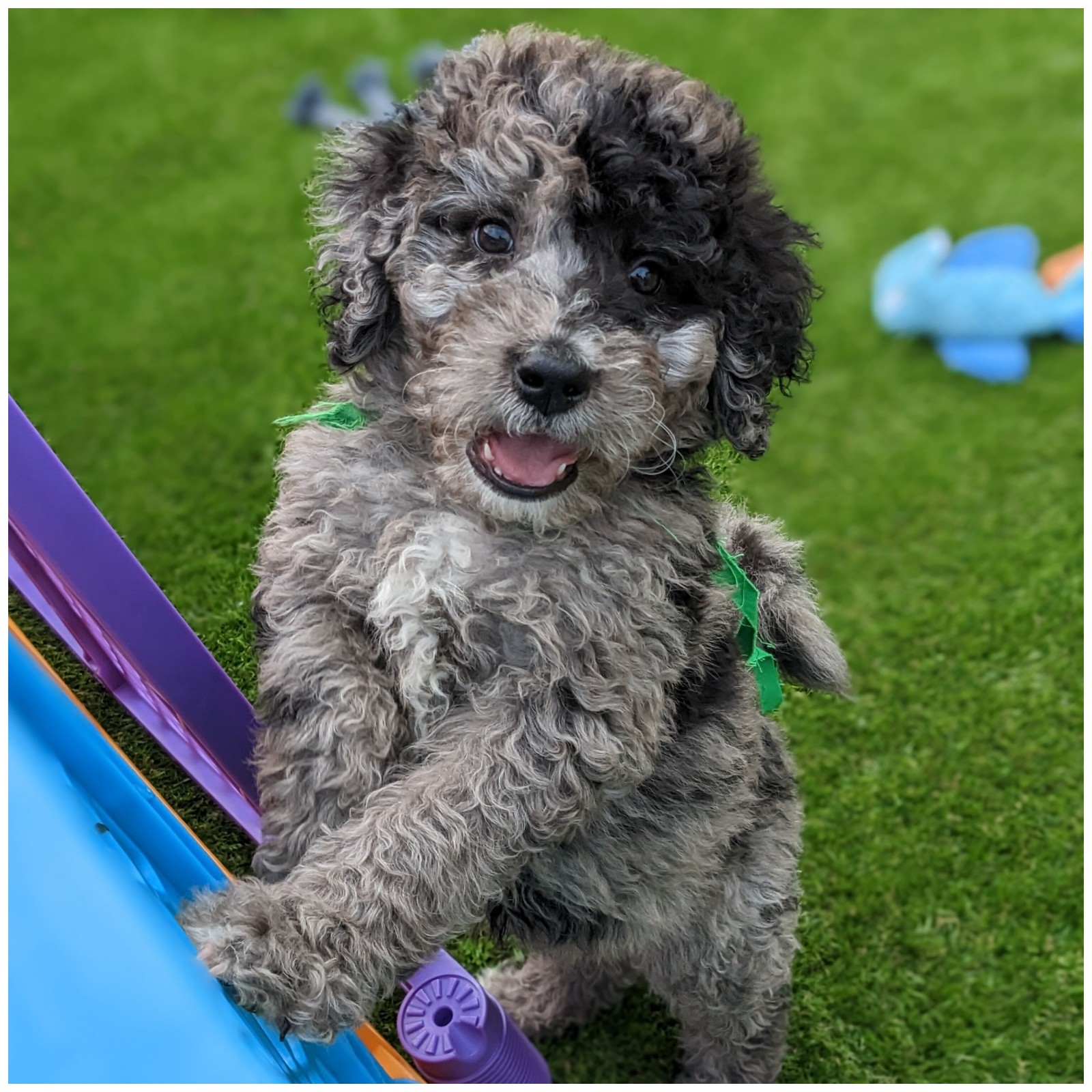 Mario is our amazing merle standard poodle, he is from AKC parents. Mario is a very nice boy, he is naturally well behaved, gentle and sweet. He has a fabulous coat that is thick and so soft.